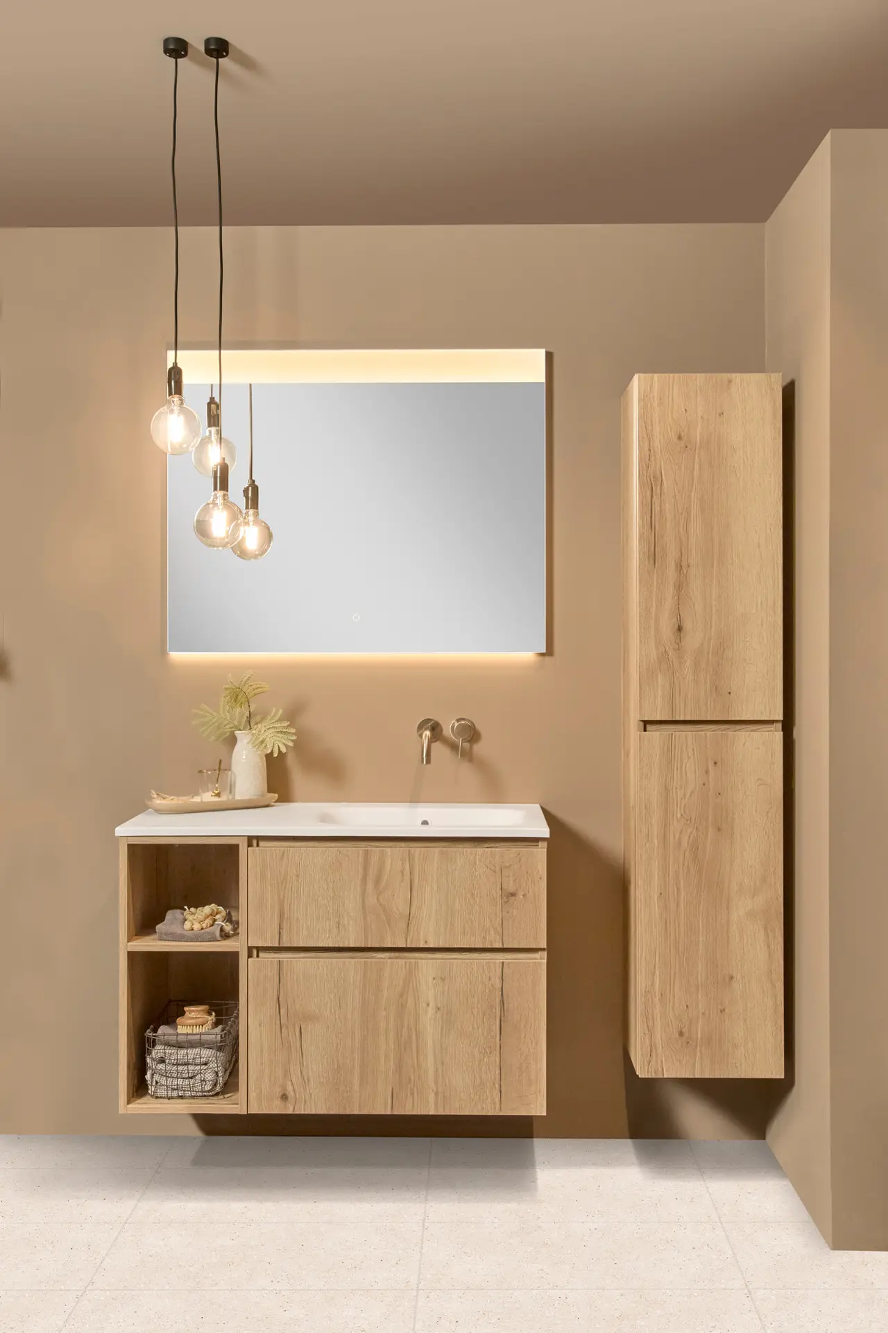Een badkamermeubel vormt het hart van je badkamer. Het bepaalt niet alleen de uitstraling, maar zorgt ook voor praktische opbergruimte en dagelijks comfort. Bij Elagant Sanitair vind je badkamermeubels in diverse stijlen, materialen en formaten die perfect aansluiten bij jouw wensen en interieur, van strak modern tot warm en tijdloos.