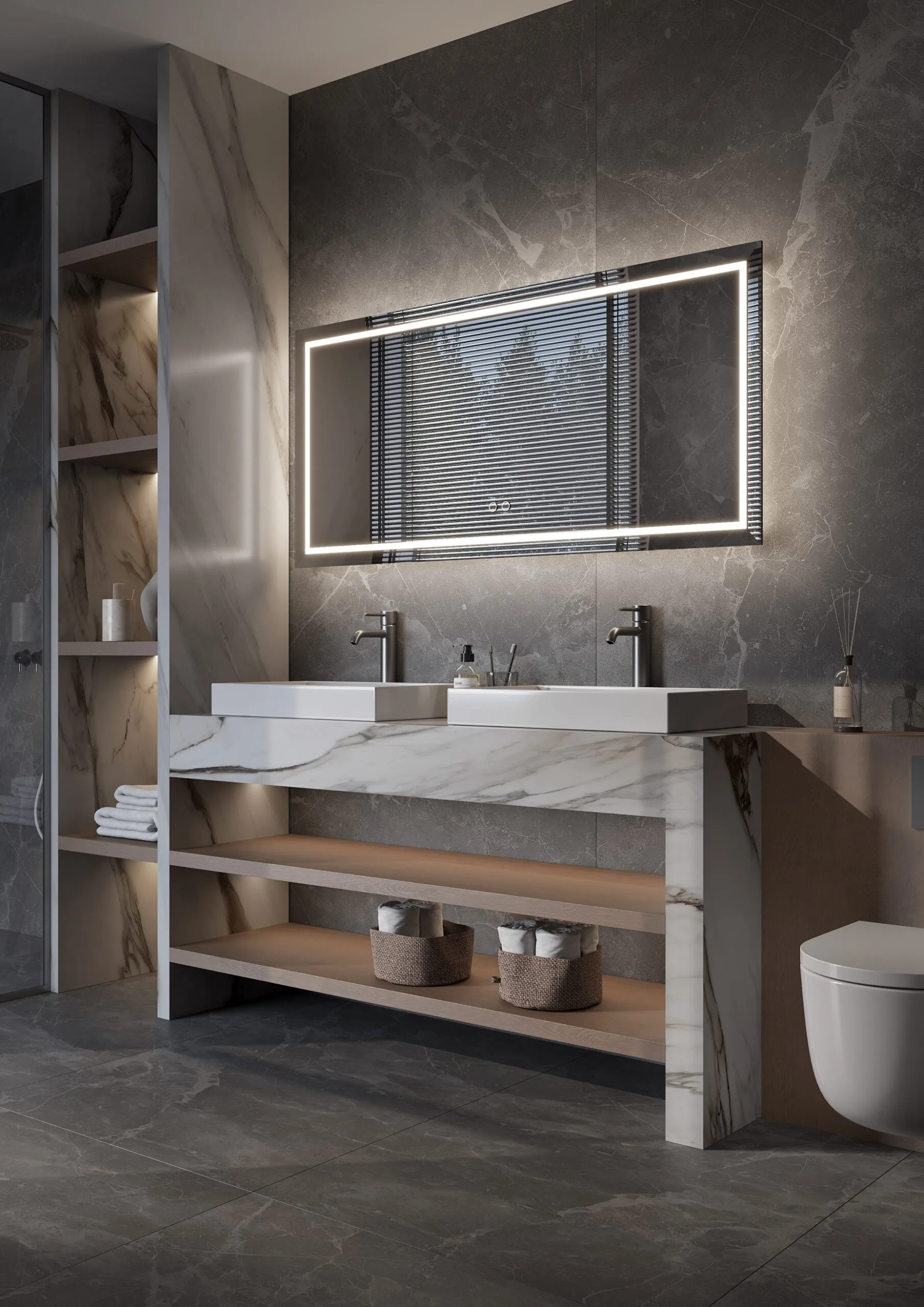 In onze showroom kun je verschillende vormen, lichtkleuren en afwerkingen rustig bekijken en vergelijken. We denken met je mee over de complete badkamerinrichting, zodat spiegel, meubel en verlichting perfect op elkaar aansluiten. Van advies en ontwerp tot professionele plaatsing begeleiden we je in elke stap, met de kwaliteit en service die je van Elagant Sanitair mag verwachten.